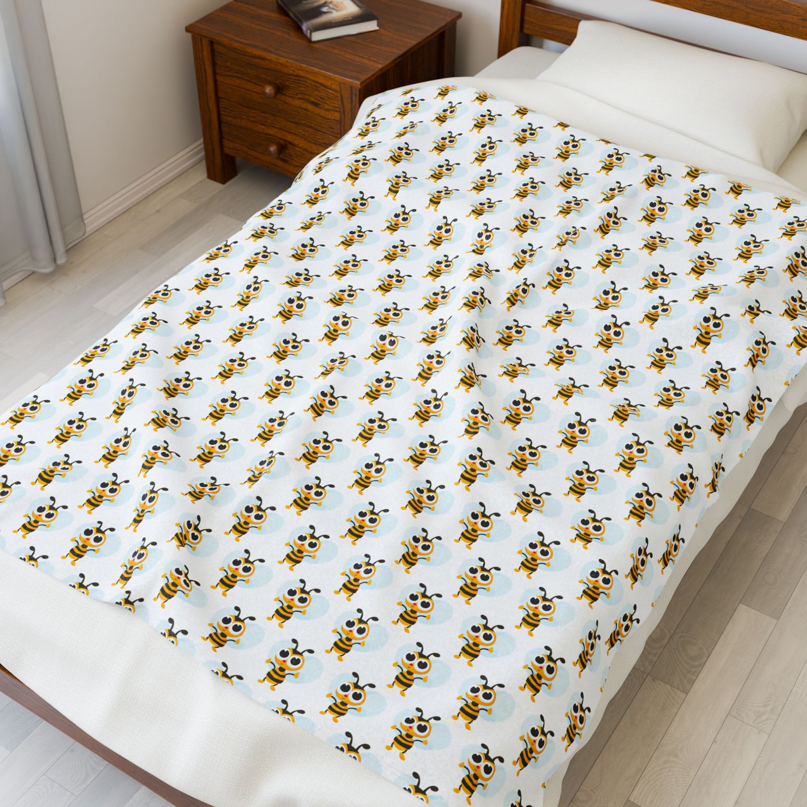 Cute Bee Velveteen Plush Blanket for Kids, Cozy Throw, Gifts for Baby Showers, Nursery Decor, Soft Snuggle Blanket